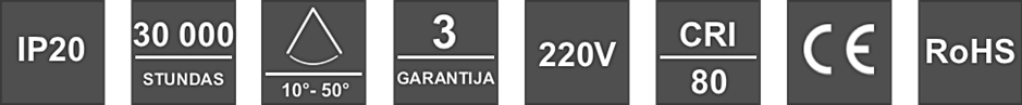 Gaismas leņķis: 10-50°